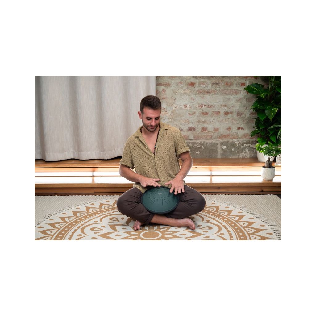 Compact Steel Tongue Drum je oceľový jazýčkový bubon s rezonančným zaobleným telom, navrhnutý na jednoduché a intuitívne hranie. Vďaka predladenej stupnici je vhodný aj pre začiatočníkov bez hudobnej prípravy. Nástroj vytvára mäkký, harmonický tón a používa sa pri meditácii, joge, zvukovej terapii alebo vo vzdelávacom prostredí.