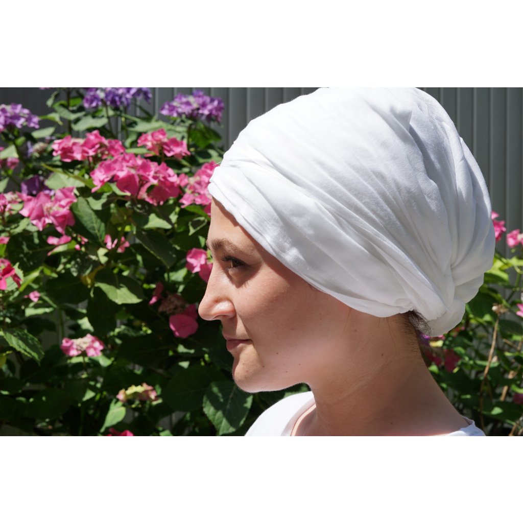 Mul Mul White je plátno na turban vyrobené z čistej 100% bavlny. Špeciálne tkaný jemný materiál. Nosenie bavlnenej pokrývky hlavy stimuluje určité akupresúrne body na hlave.Viac informácií