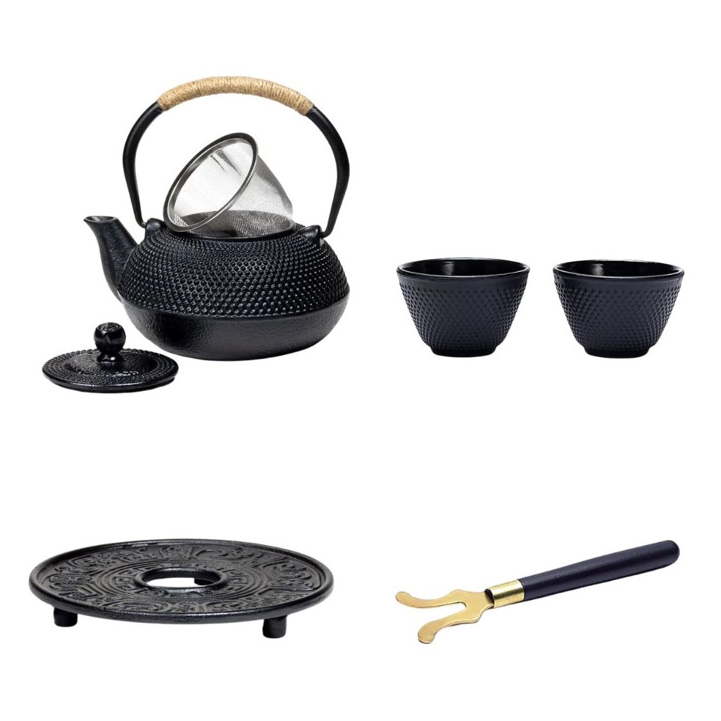 Sada Tetsubin japonská 100% liatinová kanvica 600 ml, 2x poháre, podložka, držiak