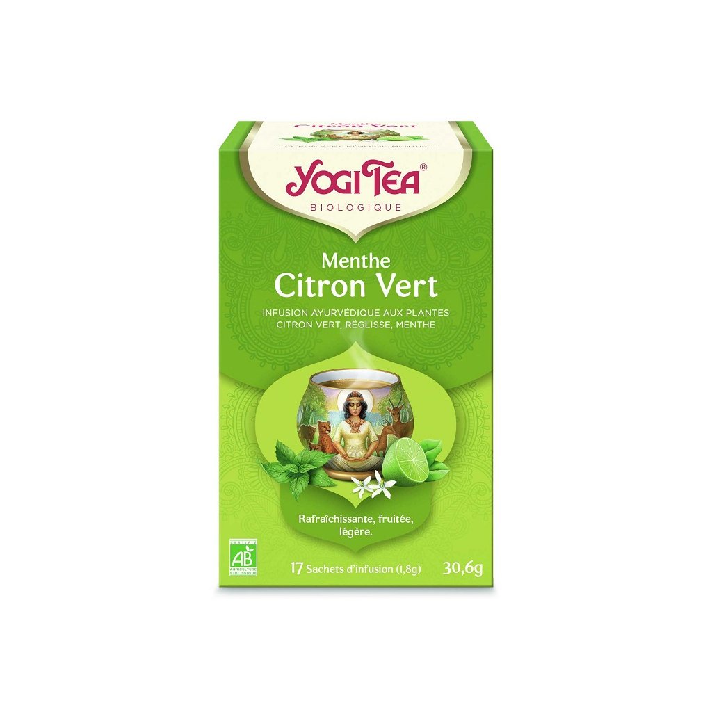 Yogi Tea Lime Mint organic je ajurvédska bylinná a korenistá čajová zmes s limetkou a mätou. Čaj prečistí vašu myseľ ako chladivý vánok v horúcom dni.