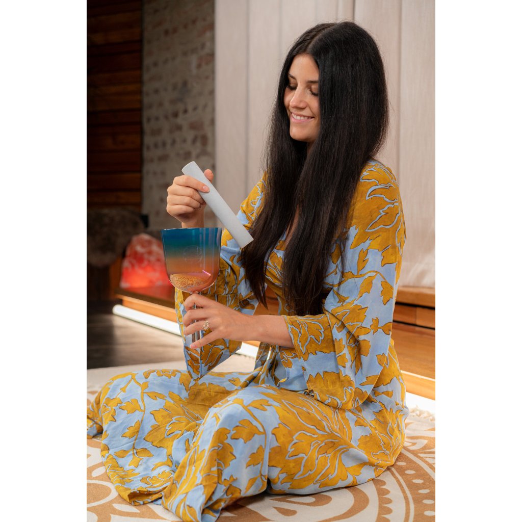Každá miska má špeciálne integrované farby, ktoré sa menia v závislosti od osvetlenia, čím vytvárajú jedinečný estetický dojem. Okrem zvukového zážitku tak prinášajú aj vizuálnu harmóniu, ideálnu pre meditácie, zvukovú terapiu a relaxáciu.