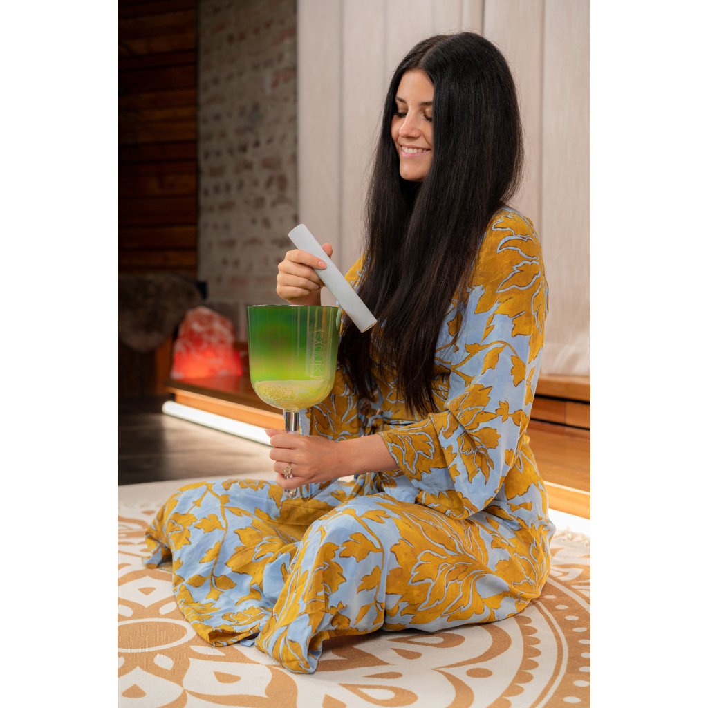 Essence Solfeggio Crystal Singing Bowls od Meinl Sonic Energy sú ručne vyrobené z vysokokvalitného krištáľového kremeňa. Tieto ľahké misky vytvárajú dlhotrvajúcu rezonanciu s jasnými, bohatými vibráciami, ktoré vyplnia priestor dynamickými alikvotnými tónmi. Reagujú citlivo aj na jemné pohyby paličky, vďaka čomu sa ľahko rozoznievajú.