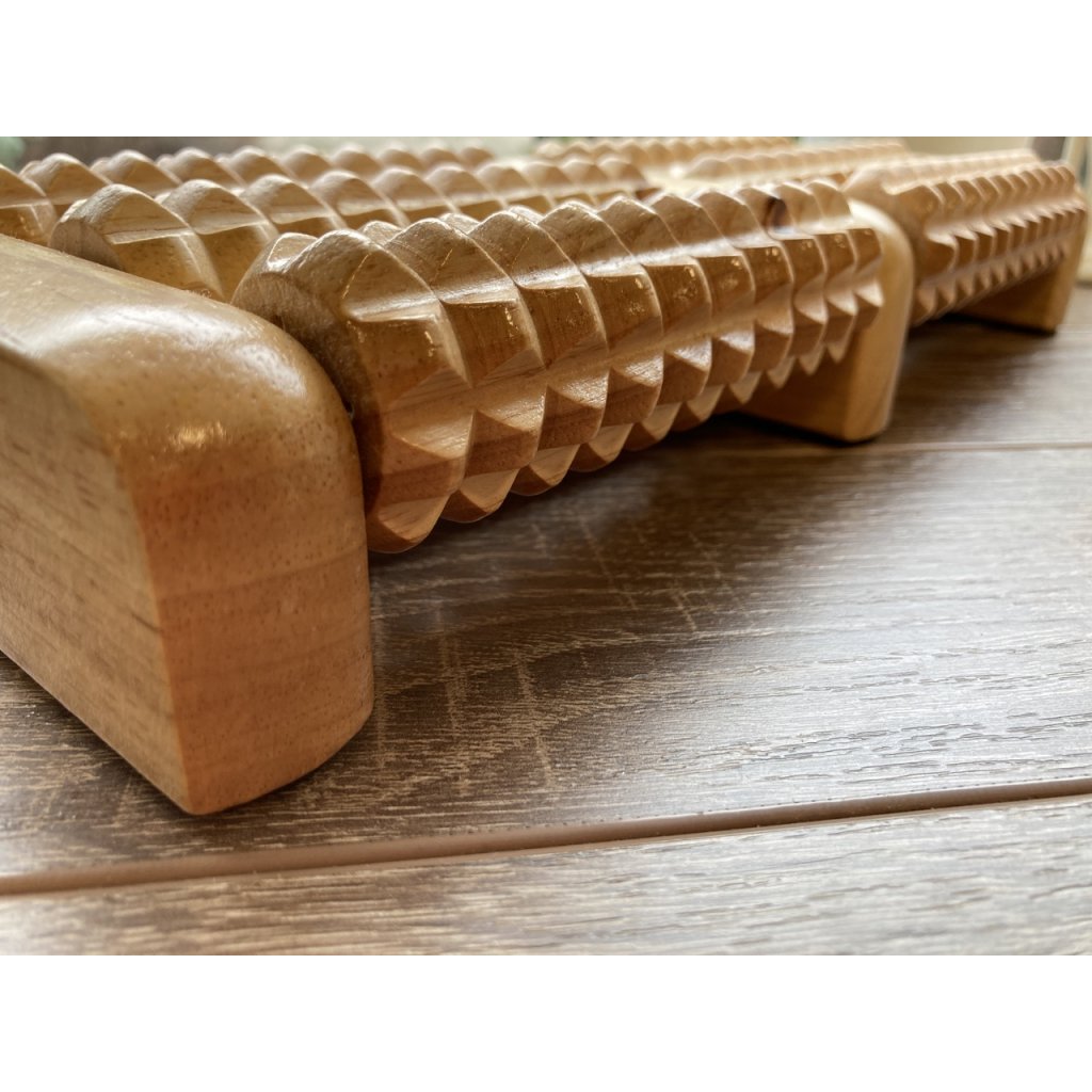 Bodhi Masážny drevený valček na nohy stimuluje reflexné zóny chodidiel a podporuje metabolizmus a krvný obeh čím zlepšuje tok energie pre revitalizačný a rebalančný efekt. Je užitočný pri bolestiach a únave nôh, pri problémoch s kĺbami, chronickej únave a poruchách spánku, problémoch s trávením, či zlou cirkuláciou krvi. Má šesť valčekov a je vyrobený z dreva.