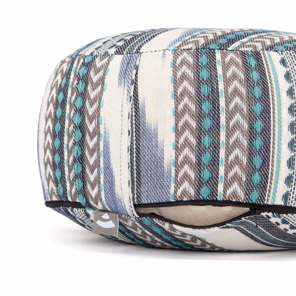 Poťah meditačného vankúša je vyrobený tradičným tkaním Ikat, alebo Jacquard a dodáva vankúšom veľmi osobitý ethno vzhľad. Je odnímateľný a prateľný v práčke do max. 30°C.
