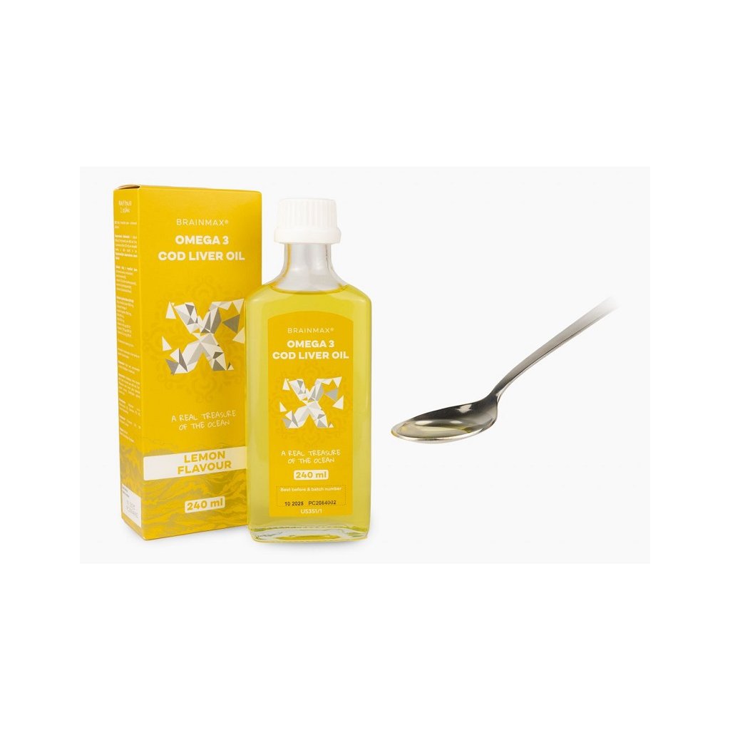 BrainMax Omega 3 olej z tresčej pečene, citrón, 240 ml