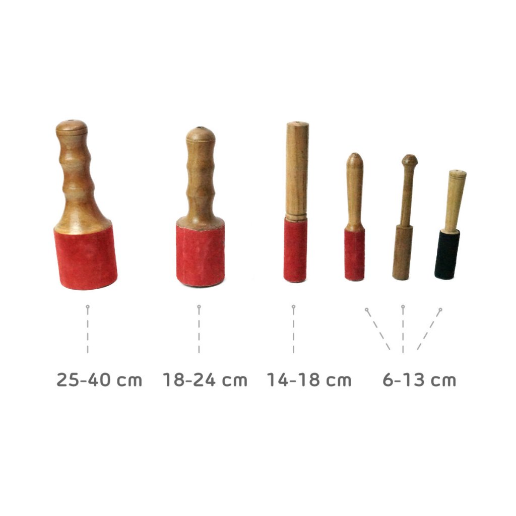 Flexity drevená palička je vhodná k veľkým spievajúcim misám veľkosti okolo 18 - 24 cm. Je potiahnutá farbenou červenou kožou.