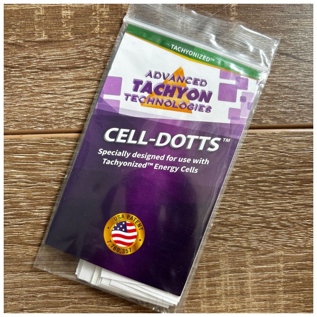 Jednoduchý spôsob, ako prilepiť Tachyonizované mikrodisky alebo energetické bunky k telu. Cell-Dotts sú obojstranné. Dotts sú hypoalergénne a zvyčajne ich môžu používať aj jedinci s citlivou pokožkou. Horúca voda uvoľní lepidlo, preto odstráňte energetické bunky/mikrodisky skôr, ako sa dostanete do sprchy, vane alebo sauny. Nezabudnite, že energetické bunky sú vyrobené zo skla a môžu sa rozbiť, ak spadnú z vášho tela.