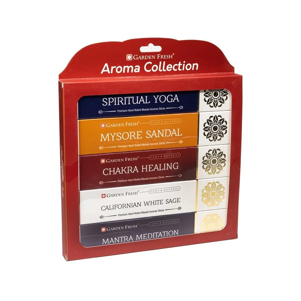 Darčeková krabička Masala s 5 baleniami indických ručne vyrobených vonných tyčiniek na zapálenie. Toto prírodné kadidlo je jedinečnou zmesou bylín, kvetov, medu, živice a prírodných esenciálnych olejov. Tyčinky sú určené na relaxáciu, meditáciu, či jogu. Vône ovplyvňujú náladu a psychiku človeka, stimulujú rôzne vlastnosti a odstraňujú negatívne energie.
